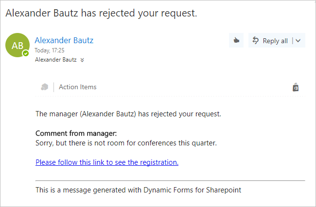 If it is approved, this email is sent: